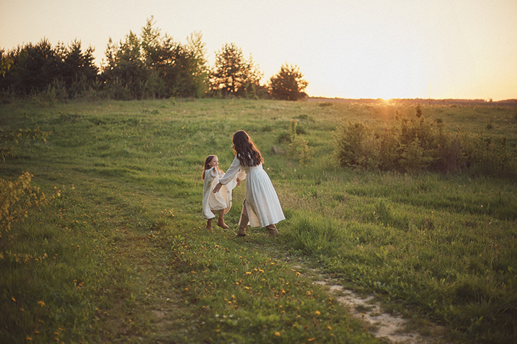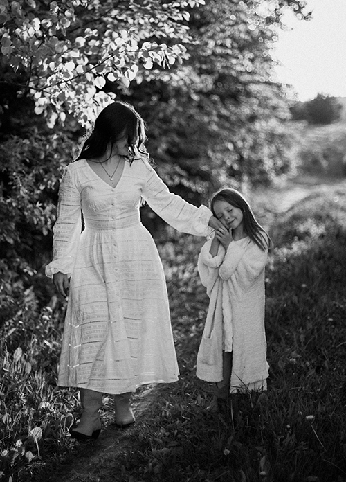 We chose a quiet field with tall grass and a little path tucked between the trees — perfect for creating natural and emotional mother and daughter portraits. Barefoot walks, laughter, and a few twirls in white dresses made this session feel like a scene from a childhood memory.
