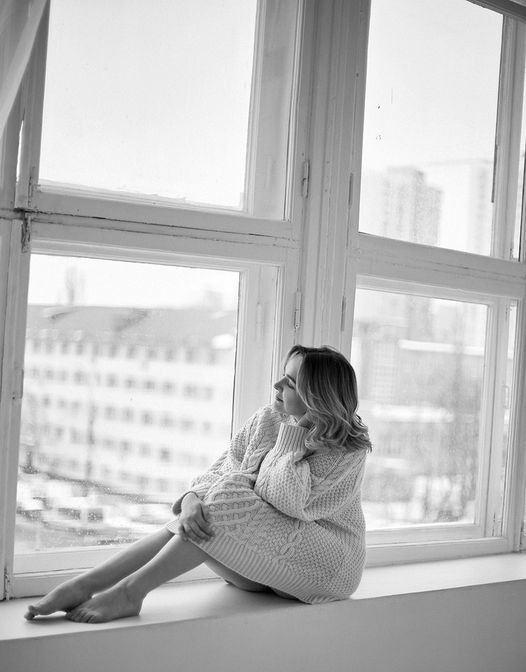 We stayed in one bright minimalistic photo studio with soft tones and lots of air. Warm sweaters, a cozy corner by the window, and a few frames with a classic black leather jacket — simple combinations that always work. Because when the light is right and the mood is calm, you don’t need anything else.
